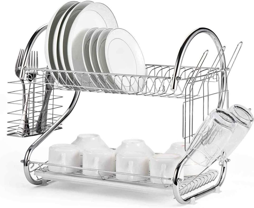 This dish rack is designed with two spacious levels to maximize storage capacity. The top tier is ideal for plates and lids, while the bottom tier holds bowls, cups, and larger kitchen items. In addition, many models include side holders for cutlery and utensils, which improves overall organization. Therefore, you can dry multiple items at the same time without crowding your sink area.