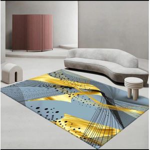 Because of its generous 7×10 size, the carpet covers a large area and helps define the layout of your room. Whether placed under a coffee table, beside a bed, or in a lounge area, it creates a comfortable and welcoming environment. Additionally, the vibrant yellow patched design introduces a bright and modern decorative element that enhances the overall look of your interior.