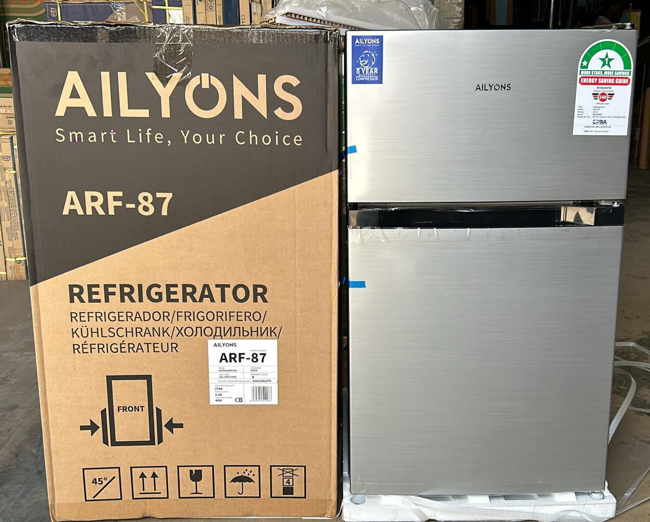 The Ailyons 90L fridge is designed with energy efficiency in mind. Its low power consumption makes it an excellent choice for those seeking to save on electricity without compromising cooling performance. It features manual defrost, a mechanical thermostat for temperature control, and quiet operation—making it suitable for bedroom or office environments.