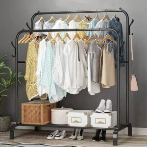 Many racks also include multiple bars or tiers, providing plenty of room to hang shirts, trousers, towels, and delicate fabrics.