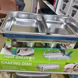 This chafing dish features a single large tray that provides enough space to serve a variety of dishes. It is ideal for main courses such as rice, stews, pasta, or grilled items. In addition, the spacious design allows guests to serve themselves easily during buffets.
