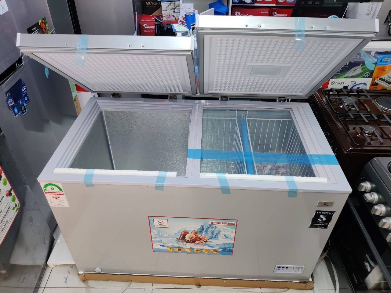 The Smartpro Freezer Two Door SCF 450G is a high-capacity cooling solution designed for both domestic and commercial use. It offers a spacious interior, efficient freezing, and a durable build that ensures long-term performance. Moreover, its double-door design improves accessibility and energy efficiency. As a result, it is ideal for households, shops, restaurants, and bulk food storage.